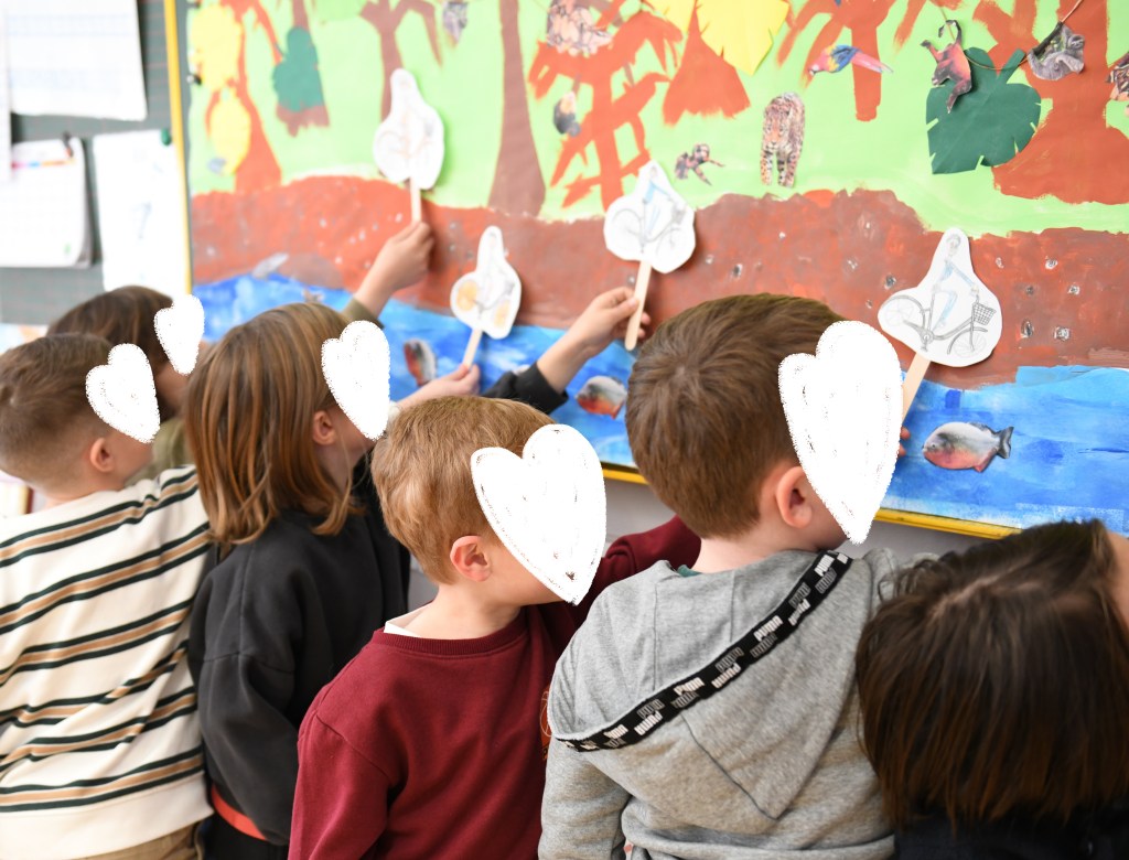 Pour les aider, je peux projeter des silhouettes en exemple afin qu’ils décalquent les contours. Ils agrémentent ensuite leurs éléments avec des collages ou autres techniques.